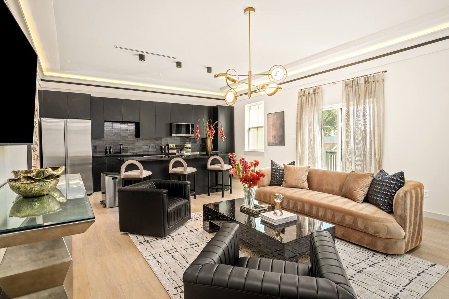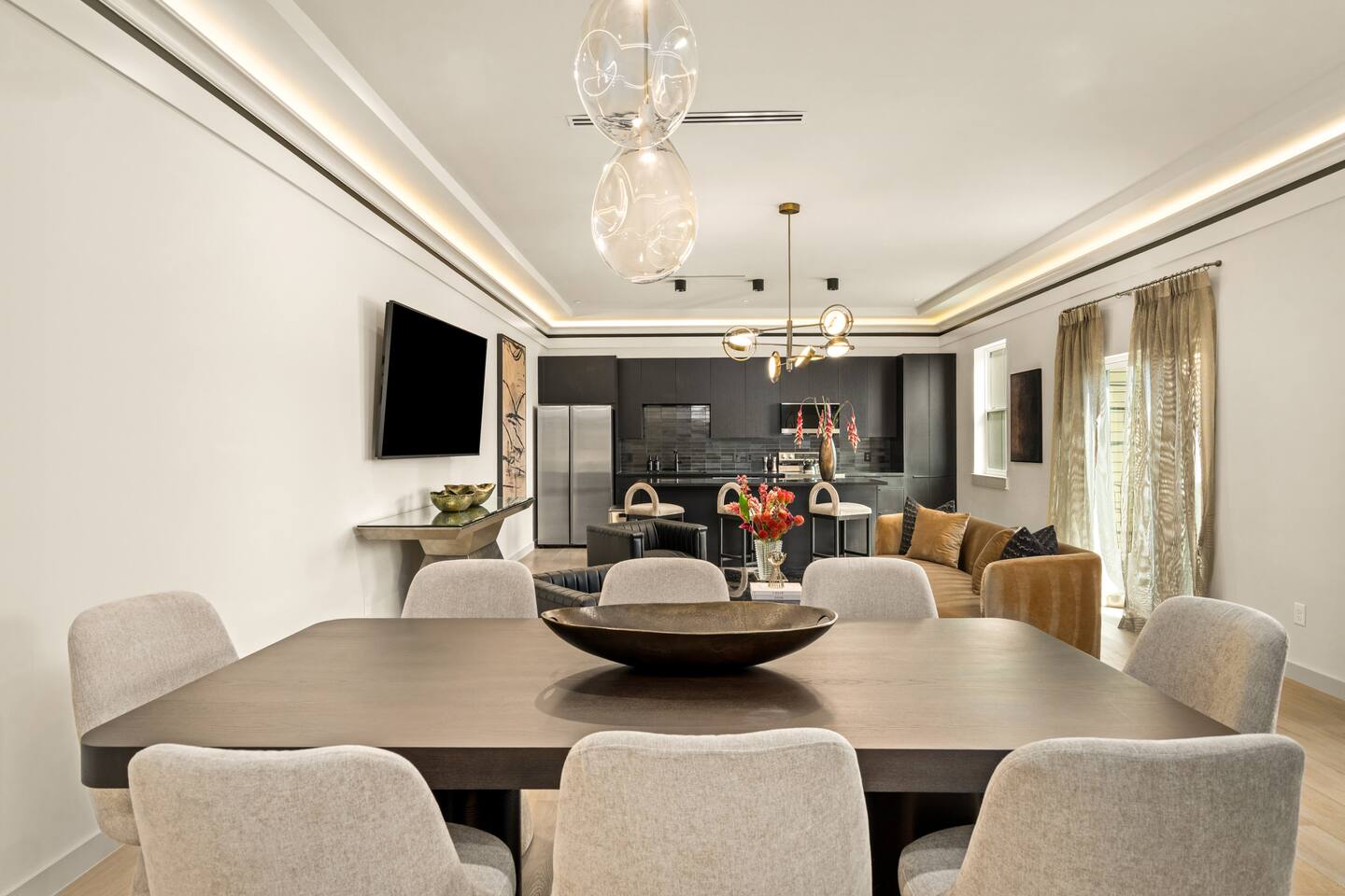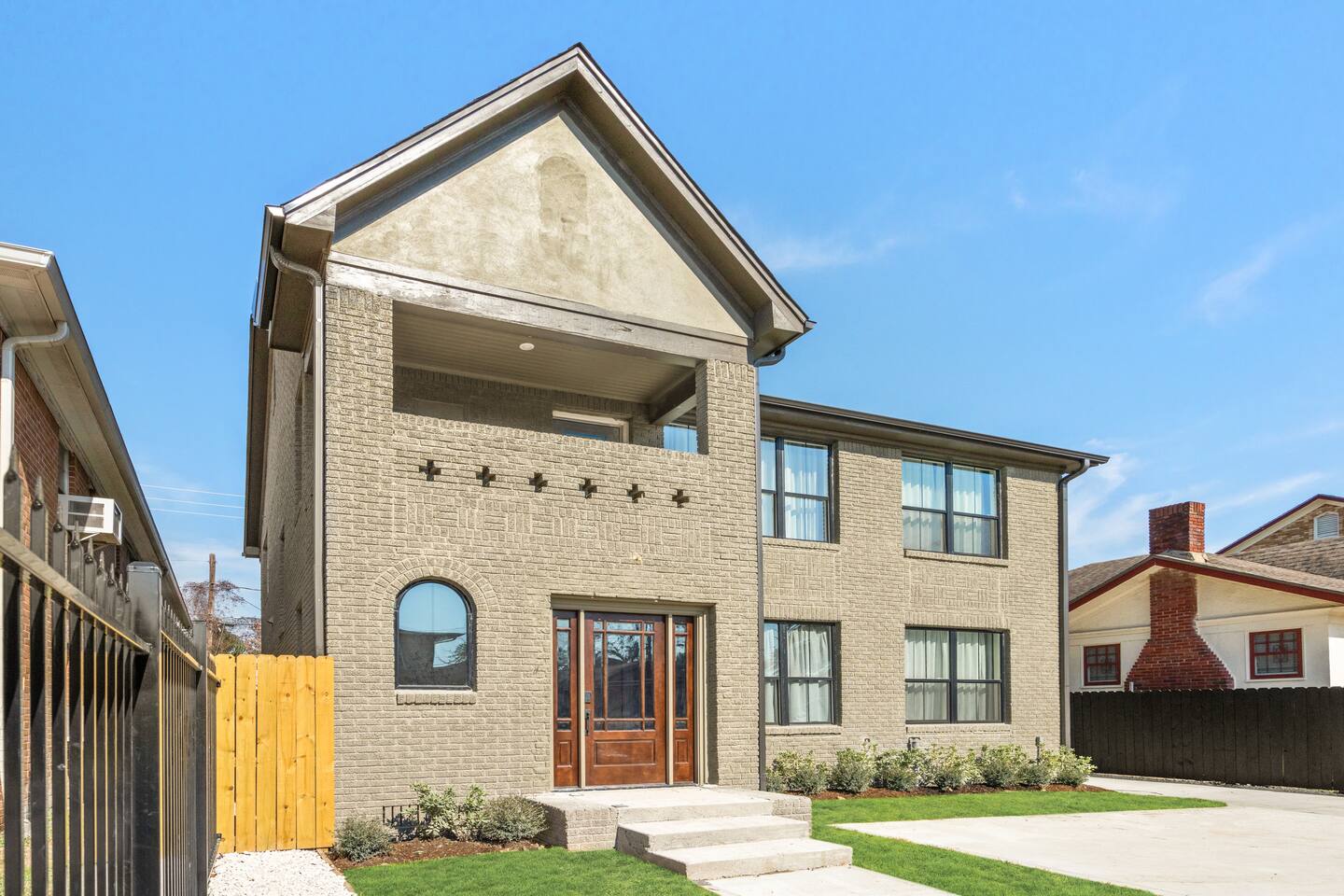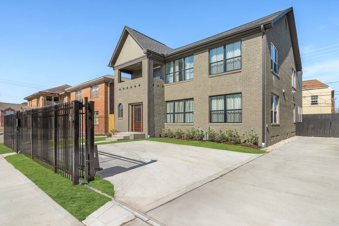 This stylish place to stay is 7 min to Med Center | 9 min Downtown | 14 min to NRG 2 upscale, spacious duplex homes with Pool(total 4,272 SF) • Suite A: 4BR/4Bath | 2,170 SF | Sleeps 11 • Suite B: 5BR/5Bath | 2,102 SF | Sleeps 10 - Private pool with outdoor seating - 4-car gated parking | Full kitchens - 9 bedrooms w/ ensuite baths - TVs in every Bedroom Perfect for families, groups & business, quiet stays only, no parties perfect for group trips.