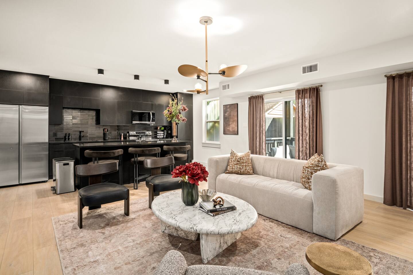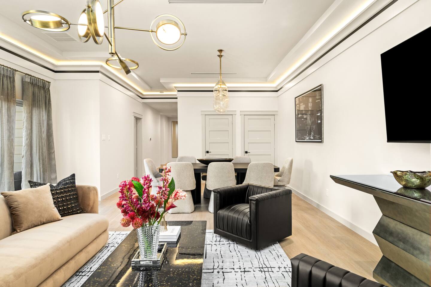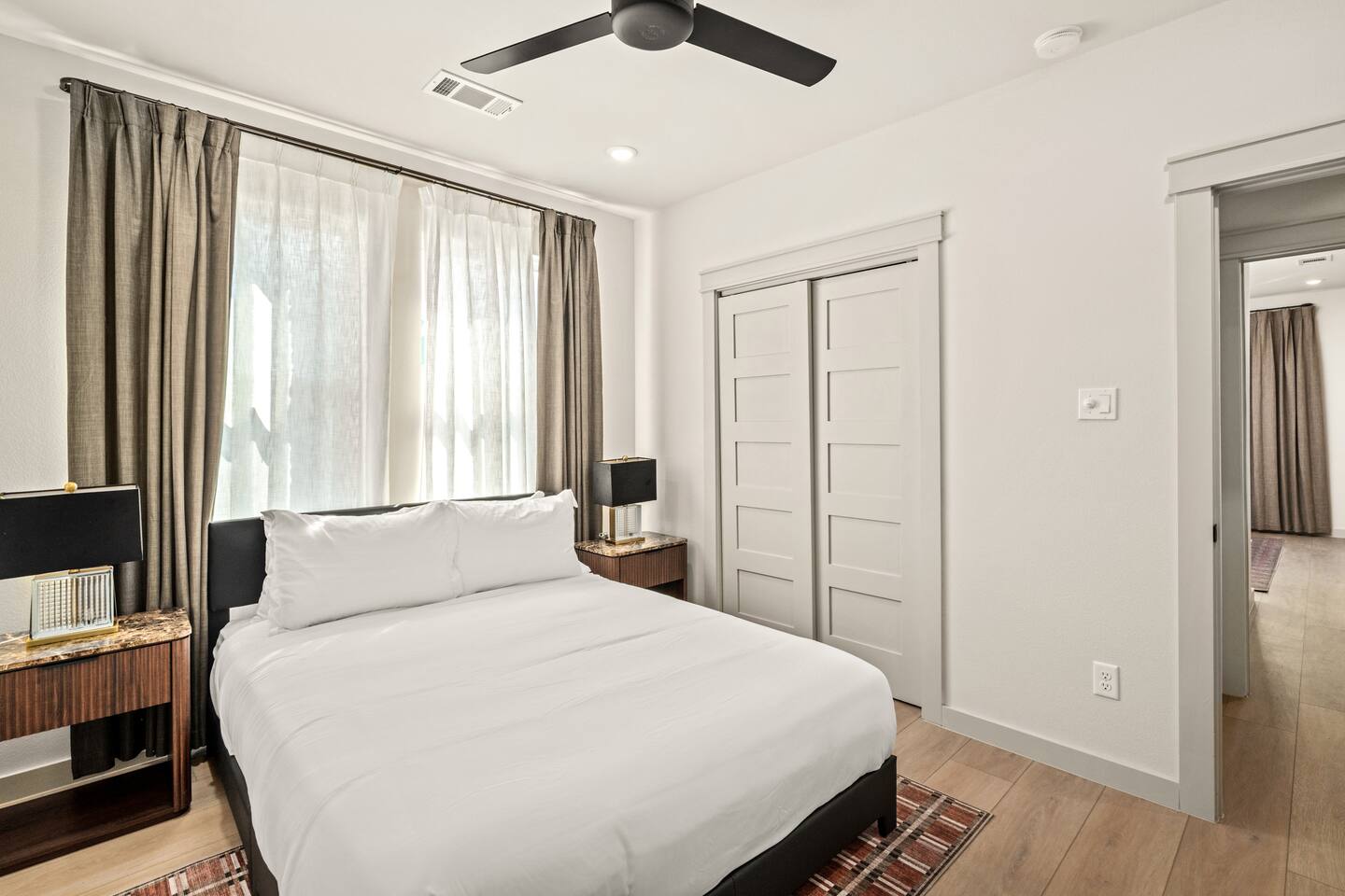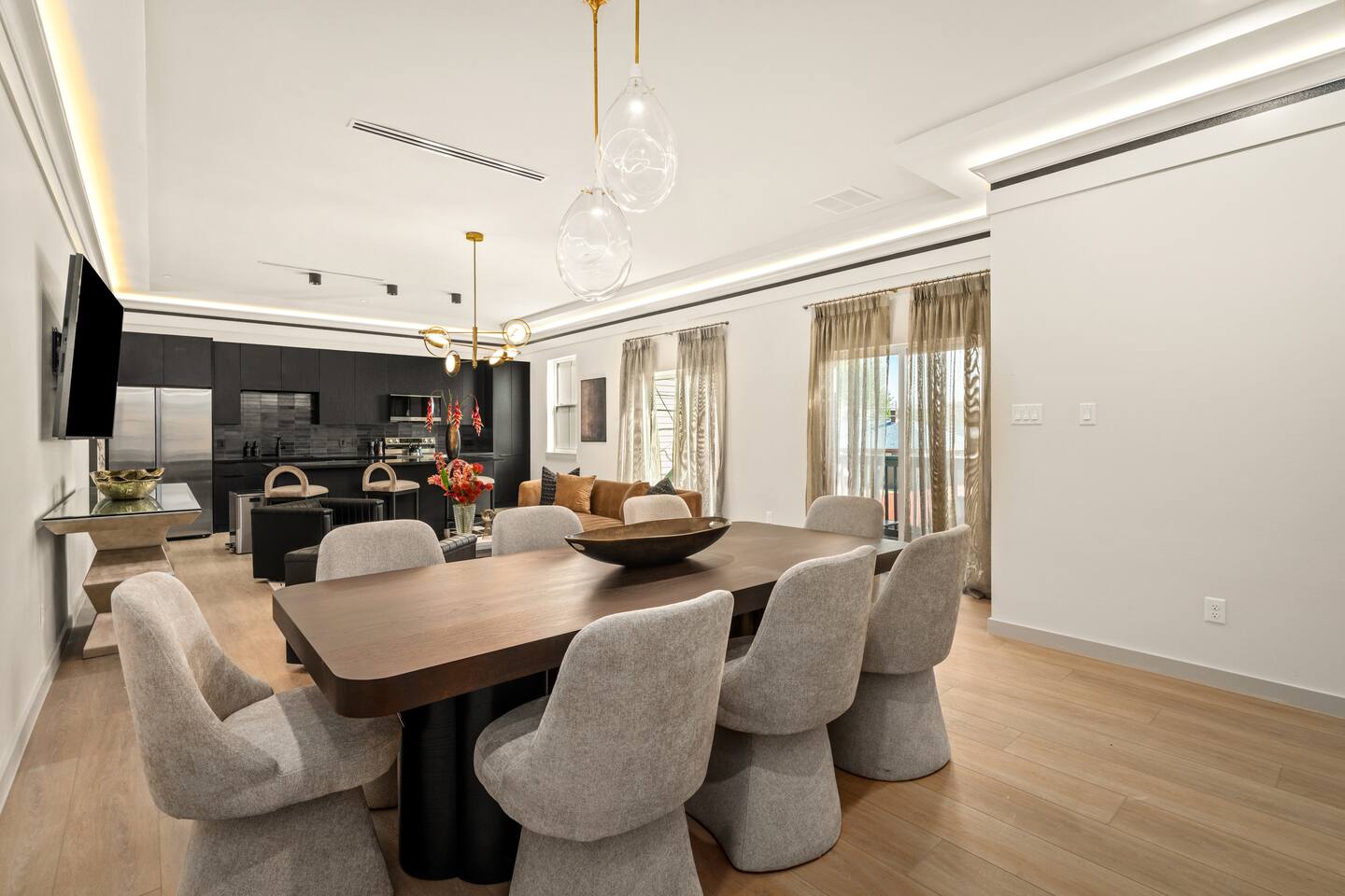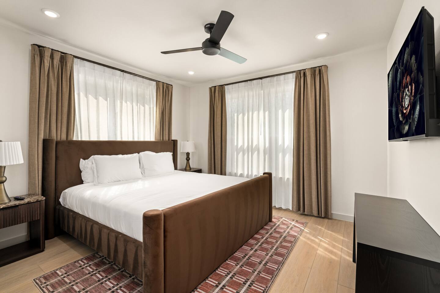 This stylish place to stay is 7 min to Med Center | 9 min Downtown | 14 min to NRG 2 upscale, spacious duplex homes with Pool(total 4,272 SF) • Suite A: 4BR/4Bath | 2,170 SF | Sleeps 11 • Suite B: 5BR/5Bath | 2,102 SF | Sleeps 10 - Private pool with outdoor seating - 4-car gated parking | Full kitchens - 9 bedrooms w/ ensuite baths - TVs in every Bedroom Perfect for families, groups & business, quiet stays only, no parties perfect for group trips.