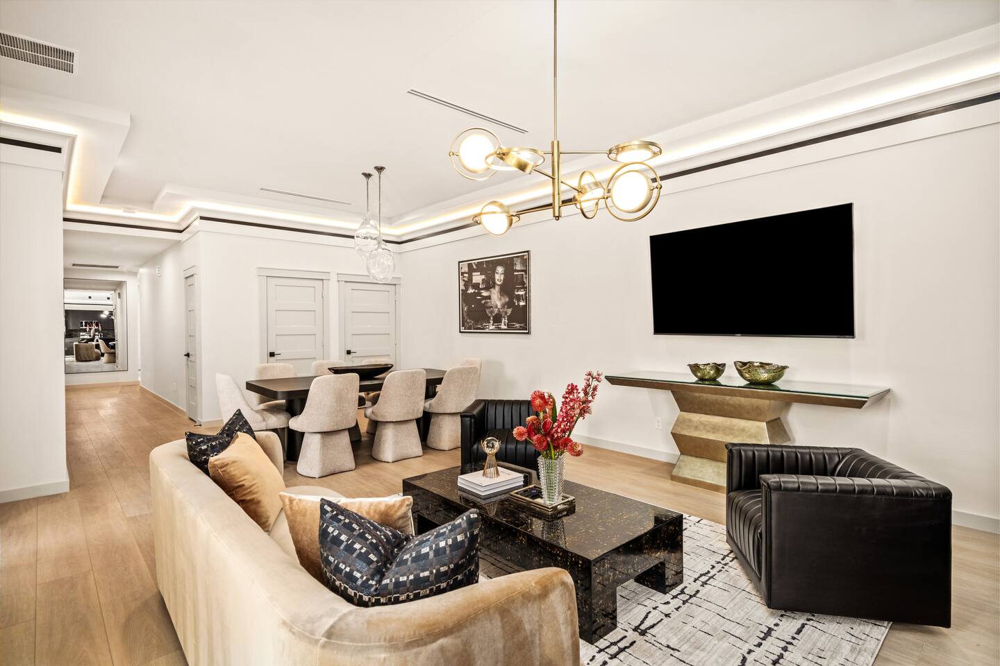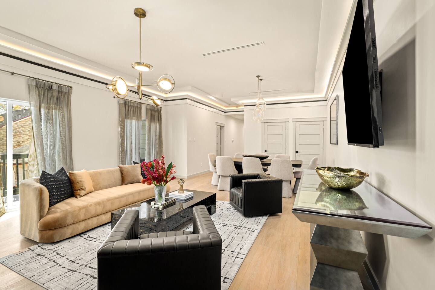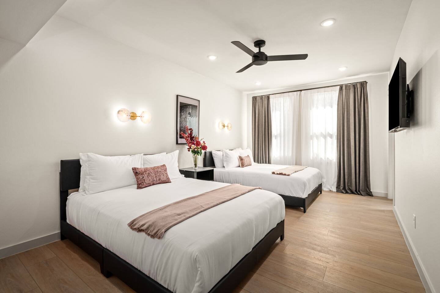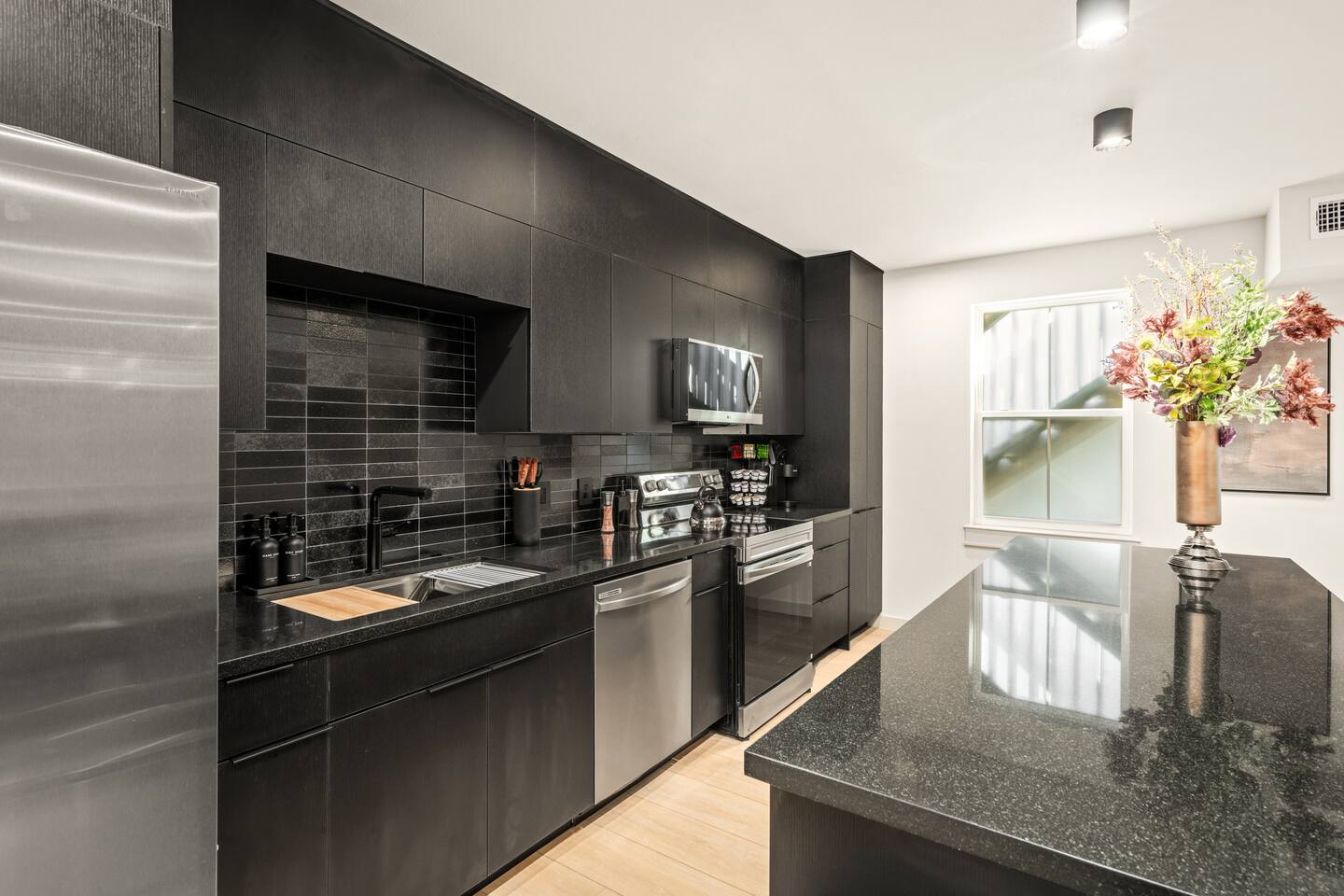 This stylish place to stay is 7 min to Med Center | 9 min Downtown | 14 min to NRG 2 upscale, spacious duplex homes with Pool(total 4,272 SF) • Suite A: 4BR/4Bath | 2,170 SF | Sleeps 11 • Suite B: 5BR/5Bath | 2,102 SF | Sleeps 10 - Private pool with outdoor seating - 4-car gated parking | Full kitchens - 9 bedrooms w/ ensuite baths - TVs in every Bedroom Perfect for families, groups & business, quiet stays only, no parties perfect for group trips.