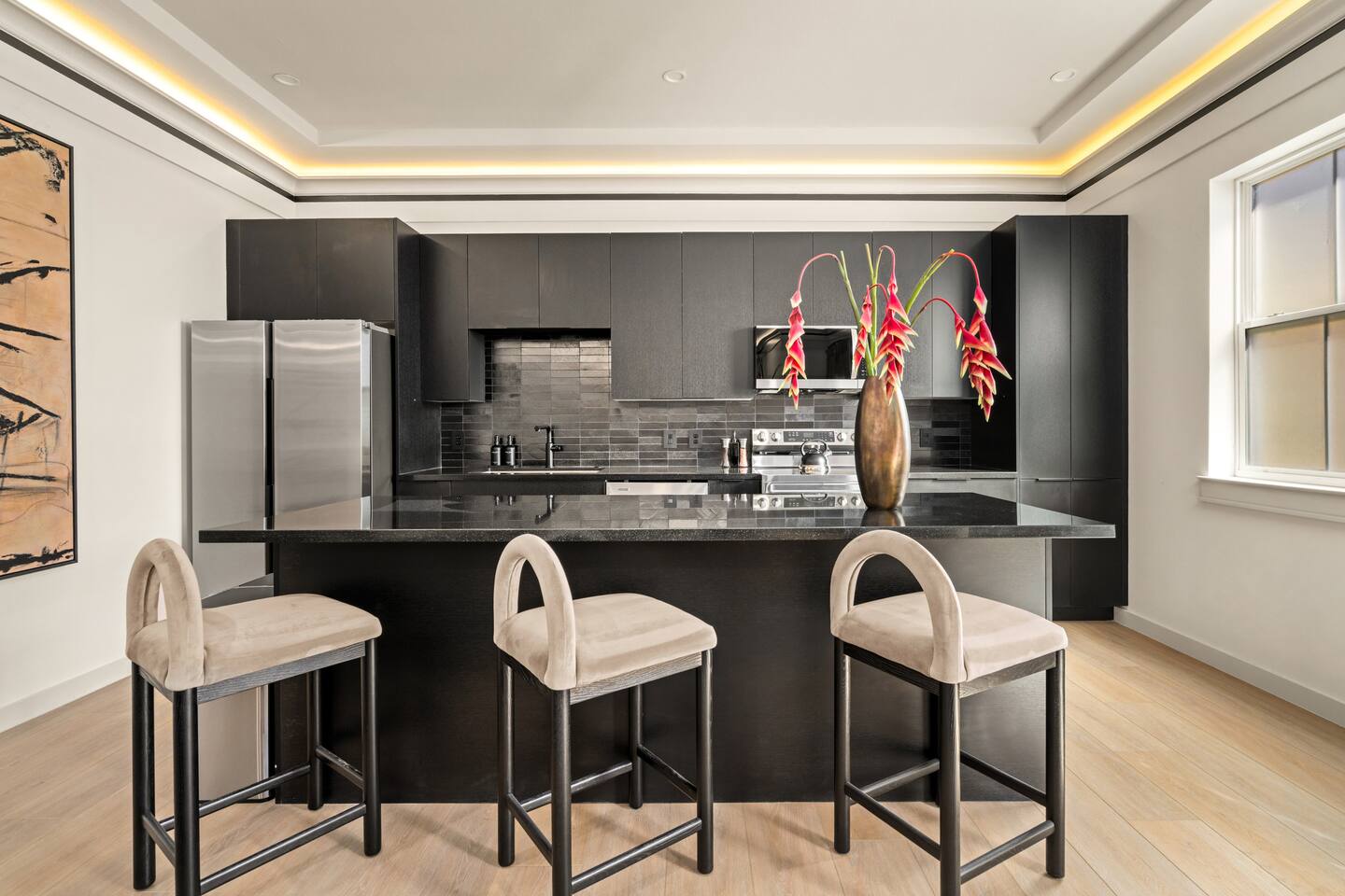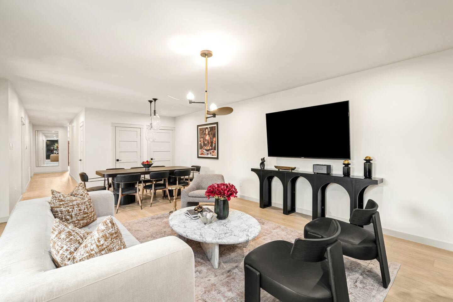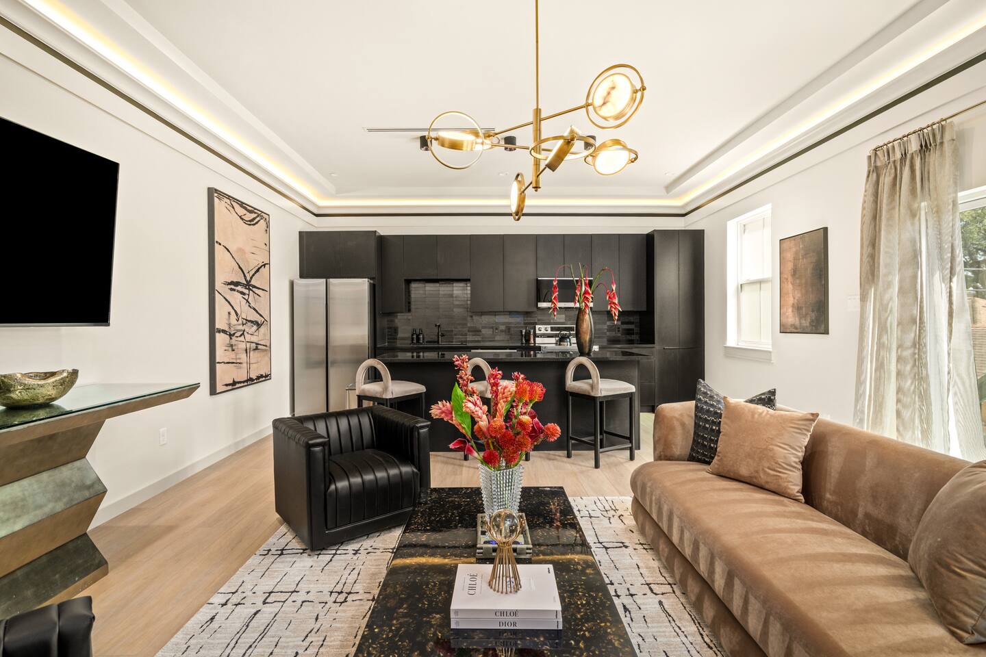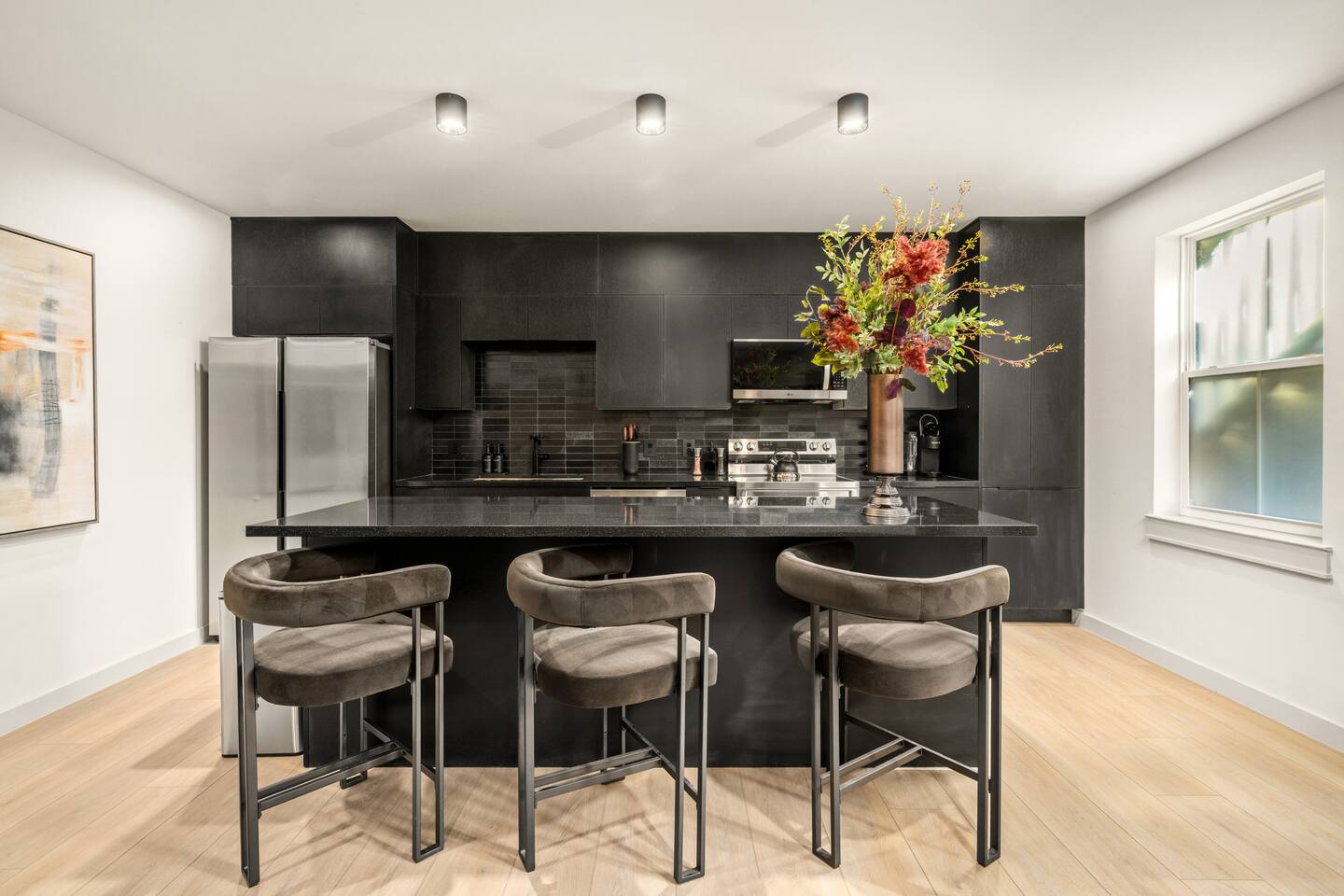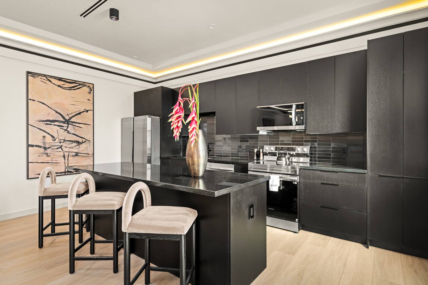 This stylish place to stay is 7 min to Med Center | 9 min Downtown | 14 min to NRG 2 upscale, spacious duplex homes with Pool(total 4,272 SF) • Suite A: 4BR/4Bath | 2,170 SF | Sleeps 11 • Suite B: 5BR/5Bath | 2,102 SF | Sleeps 10 - Private pool with outdoor seating - 4-car gated parking | Full kitchens - 9 bedrooms w/ ensuite baths - TVs in every Bedroom Perfect for families, groups & business, quiet stays only, no parties perfect for group trips.
